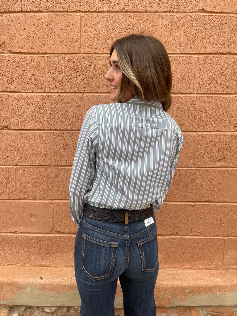 Athlete tested and arena proven, this shirt is built to compete. It's engineered with an easy-care performance fabric, which stretches with your every move and looks polished right out of the wash. Add UPF sun protection and a flattering, saddle-ready fit and you've got a shirt that can keep up.