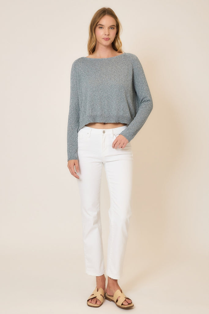 Stay cozy and stylish with our Fabienne Knit Sweater. Made of a lightweight knit fabric, this denim blue colored sweater is perfect for transitioning between seasons. The boat neck adds a touch of sophistication, making it a versatile and must-have addition to your wardrobe.