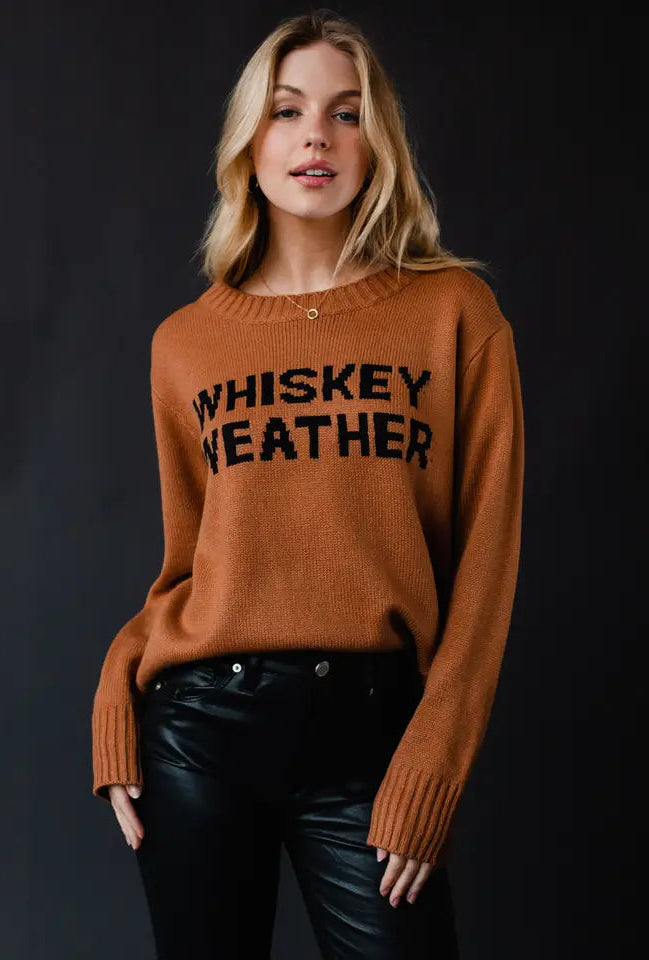Cozy up in the Whiskey Weather Sweater, your new go-to for chilly days. This soft brown knit wraps you in warmth and comfort, perfect for sipping your favorite drink or just lounging around. Its rich color and snug fit make it an easy choice for sweater weather vibes with a playful twist.