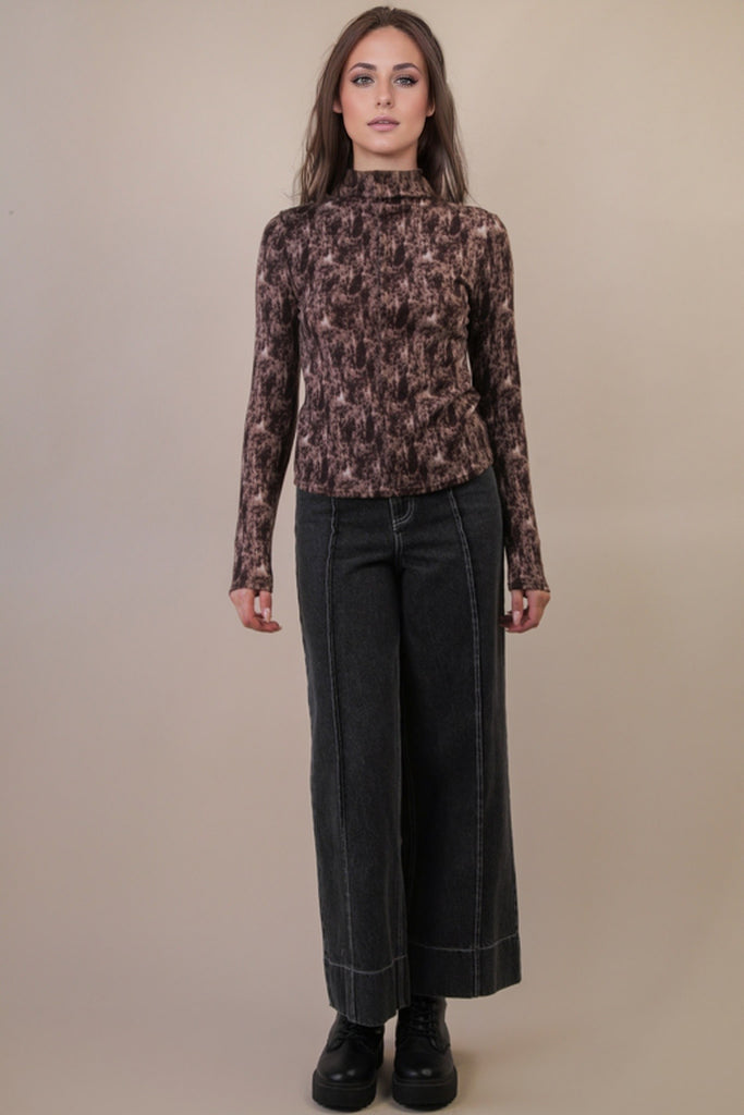 Embrace cozy chic with this leopard print super soft mock neck top. The center seam detail adds a stylish touch, making it perfect to wear solo or layered for extra flair. Soft, playful, and effortlessly cool—your new go-to for any occasion.