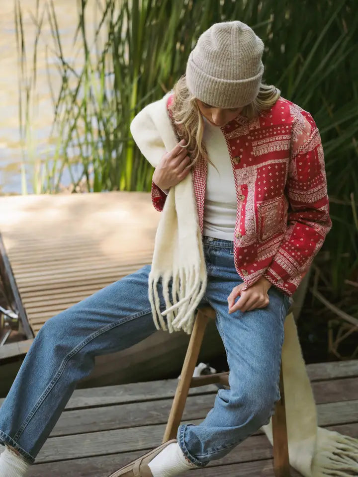 Wrap yourself in retro charm in this fun Bandana Patchwork Quilted Jacket, featuring a vibrant red quilted fabric adorned with a classic bandana pattern. This vintage-inspired piece adds a playful twist to your wardrobe, blending soft cozy warmth with timeless style. Perfect for those who love a pop of color and a touch of nostalgia in their outerwear.