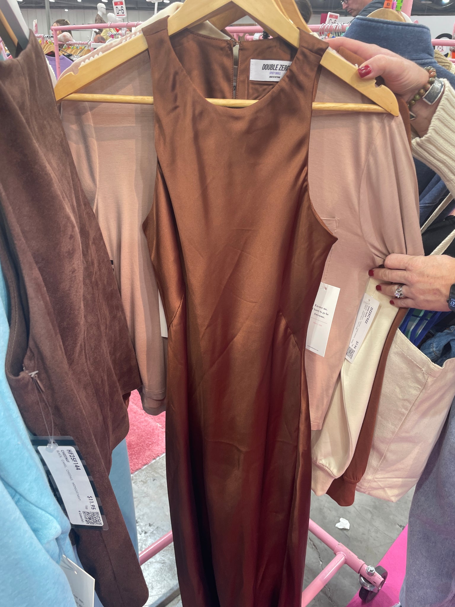 Introducing our stunning Chestnut Slip Dress. Made with luxurious satin fabric, this rich chestnut brown dress is perfect for any occasion. The keyhole back adds a touch of elegance and sophistication to this timeless piece. Elevate your wardrobe with this must-have dress.