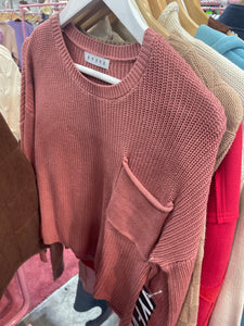 The Brandi Rose Sweater is your cozy winter companion with a classic crewneck and a relaxed fit that invites comfort all season long. Featuring a fun patch pocket. Stay snug, stylish, and playful whenever the cold rolls in!