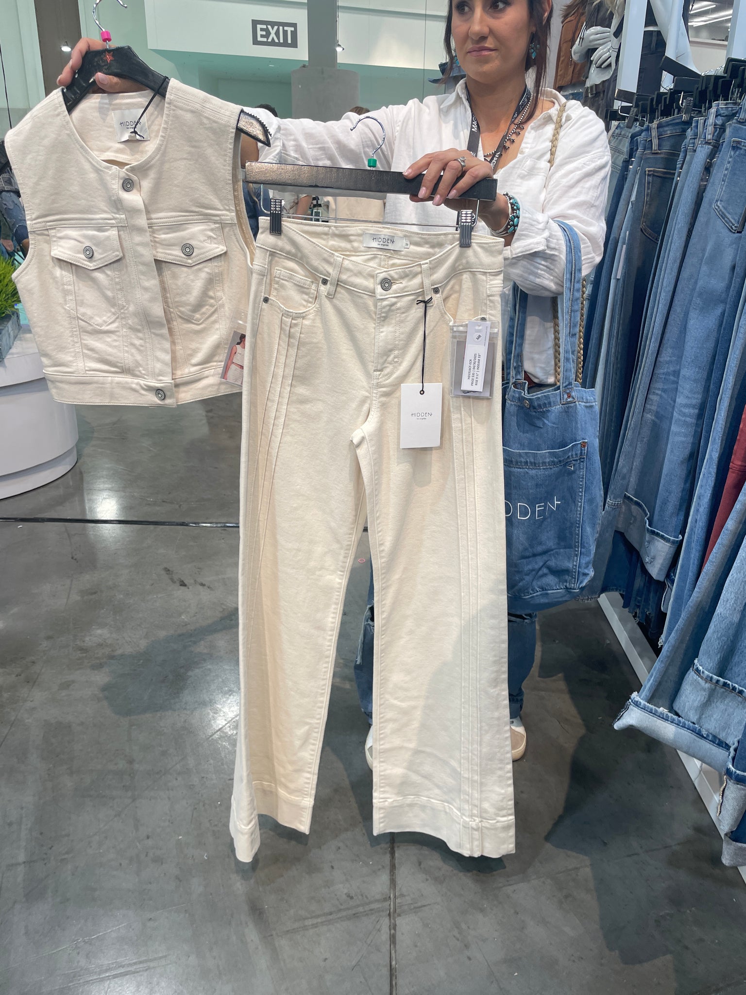 Experience comfort and style with the Hidden Happi Flare Jeans, now available in a fresh new color. Designed with a flattering flare and slant front pockets, these jeans offer ease of movement and a modern silhouette. The center seam detail adds subtle sophistication, while the matching vest completes a coordinated, effortless look you’ll love wearing every day.