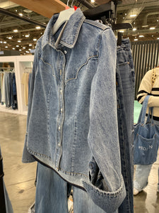 The Juliette Denim Shirt features a medium wash for a natural, rugged overworn look that adds effortless style to any outfit. Its distinctive flare sleeves and binding hem detail provide a unique, fashionable edge, while darts at the front and back ensure a flattering, tailored fit. Enhanced by front yoke detailing, this shirt combines classic western denim charm with modern design for a versatile wardrobe staple.