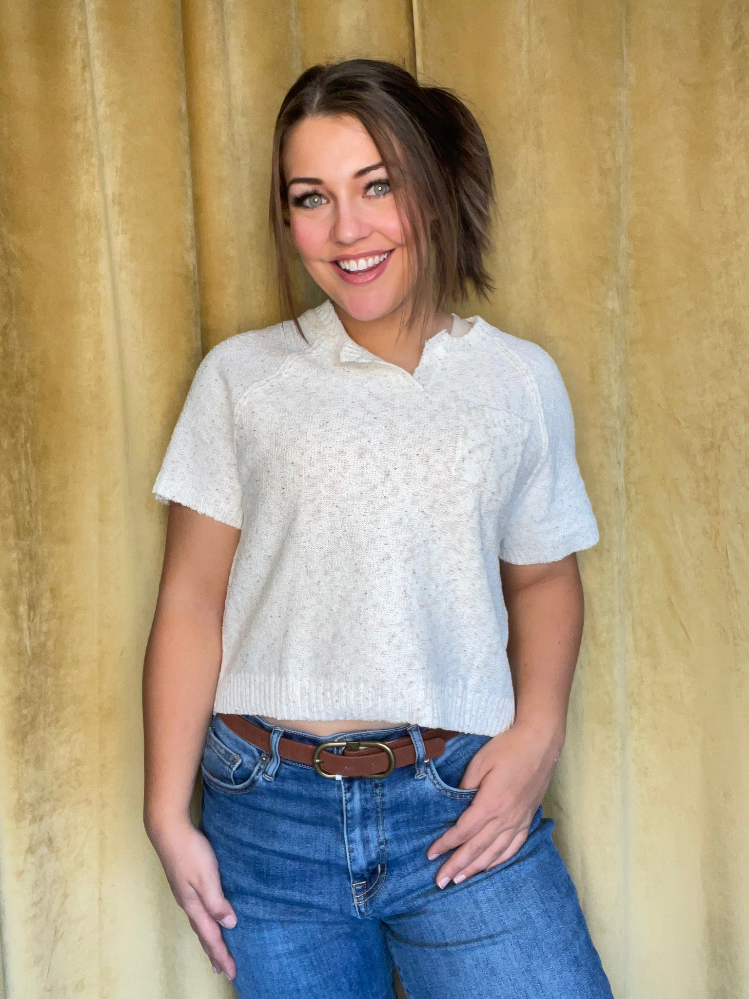 Looking for the perfect top to pair with any outfit? Look no further than our Oatmeal Melange Top! Its lightweight design is perfect for any occasion and its neutral, versatile color will make it your go-to piece! (Seriously, it goes with everything!)